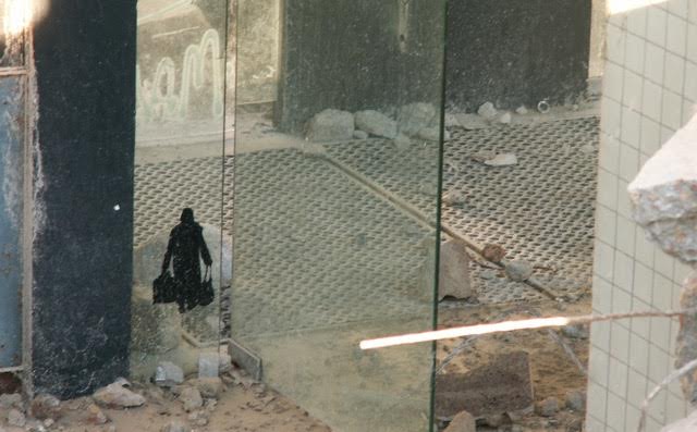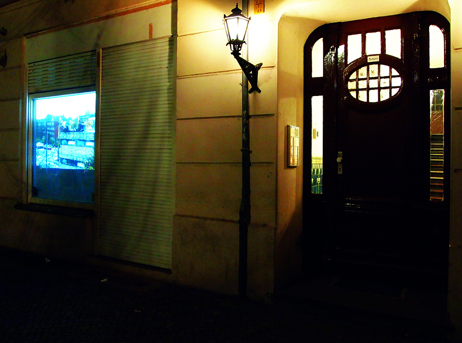 Von der Strasse auf die Strasse - auf das Schaufenster projeziert beleuchten die Bilder die dunkle Ecke.