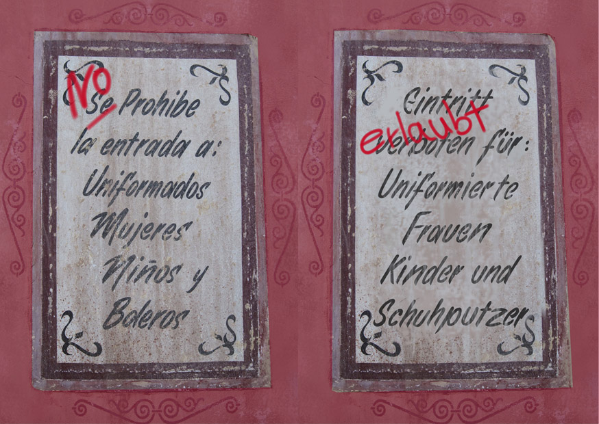 „Eintritt verboten für Uniformierte, Frauen, Kinder und Schuhputzer“