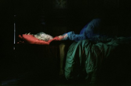 Ganz überraschend wirken in diesem Oevre die Schlafbilder, in denen sich die Fotografin über Nacht selbst beobachtet. Es vergehen Stunden, während derer die Camera, still gestellt und mit geöffnetem Verschluss, die Eindrücke der Dunkelheit nach und nach sammelt und speichert. Erst gegen Morgen wird ihr intimer Blick beendet, der Tag beginnt. Zurück bleiben langsame, friedliche Bilder auf der Grenze zwischen Nähe und Distanz, zwischen Tag und Traum – doch an die Träume der jungen Frau kommt ihre stumme Zeugin nicht heran.