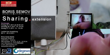 In his opus “Sharing extension” (2010/11), Boris Semov is a creator of saturated visual extracts taken from the world of the virtual reality. His two-dimensional computer generated pictures crisscross numerous intimate narratives, not only his own personal ones, but also his web interlocutors'. They crisscross fragments of objects that create sense of timelessness, as well as details of the everyday life, which within the artistic amalgam gain new, at moments abstract meaning.