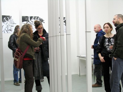 Cécile Dupaquier benutzt für ihre Raumbauten gleich bleibende Formen und Stützelemente.